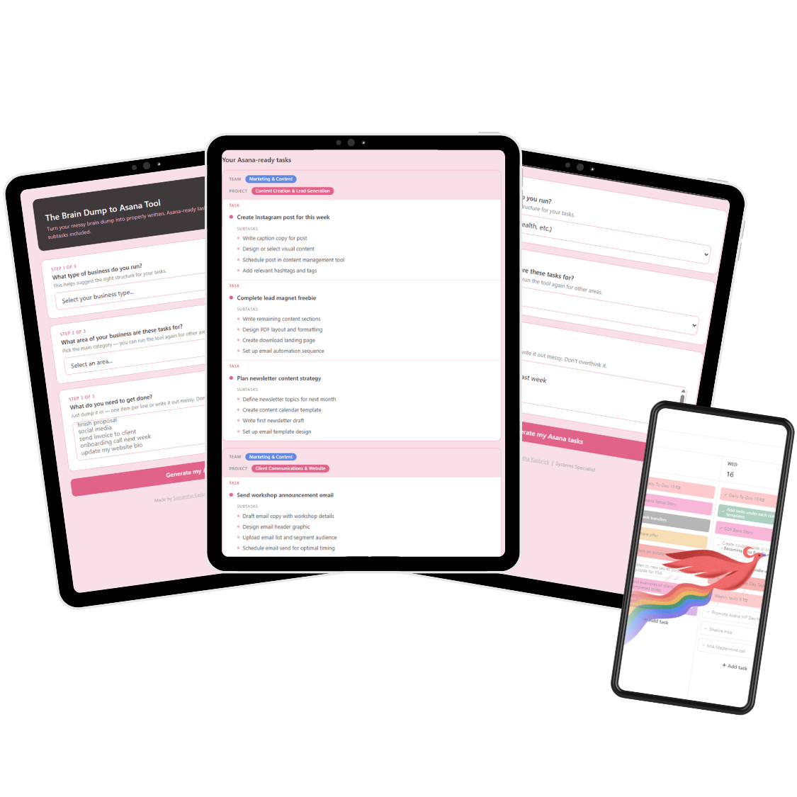 You answer two quick questions, dump in everything that's on your mind, and it hands you back a clean, organized task list - with suggested projects and subtasks already included!